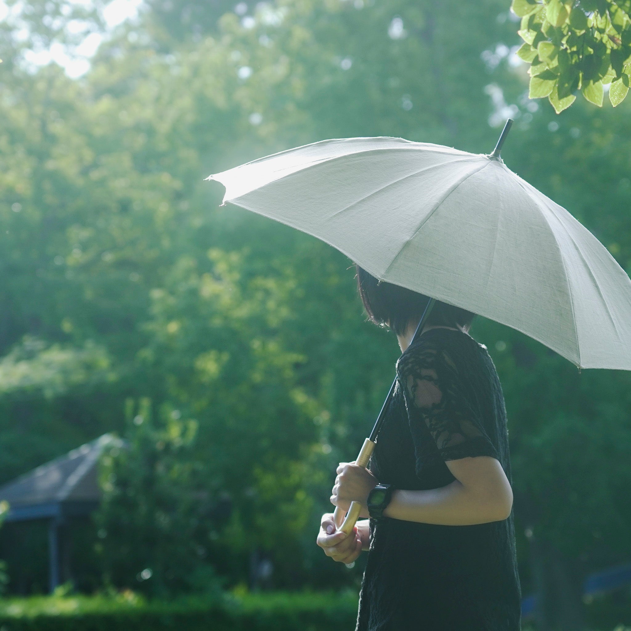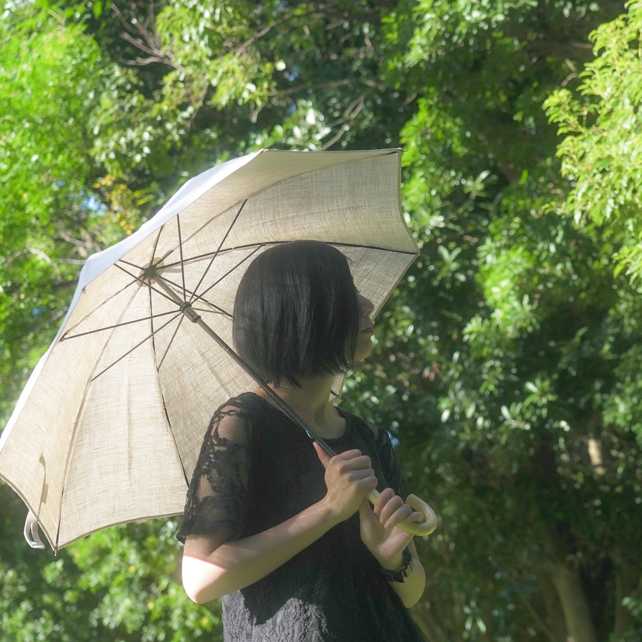 ヘンプ麻を丁寧に織り上げた、蚊帳生地の日傘。