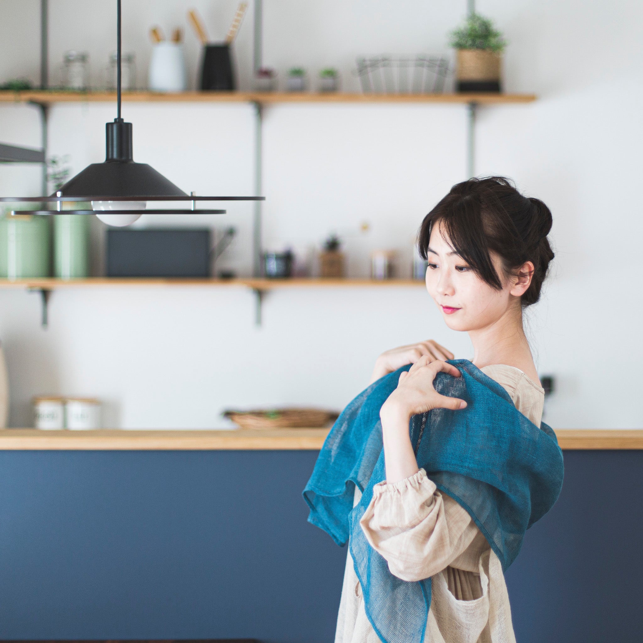 ヘンプの持つ吸湿・速乾性は、サラッと感を保ちます。さらに藍の抗菌・消臭性もあるので、夏でも快適にお使いいただけます。